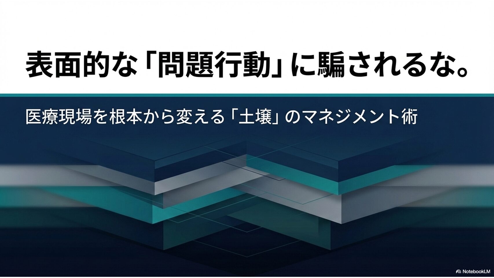 表面的な「問題行動」に騙されるな。医療現場を根本から変える「土壌」のマネジメント術